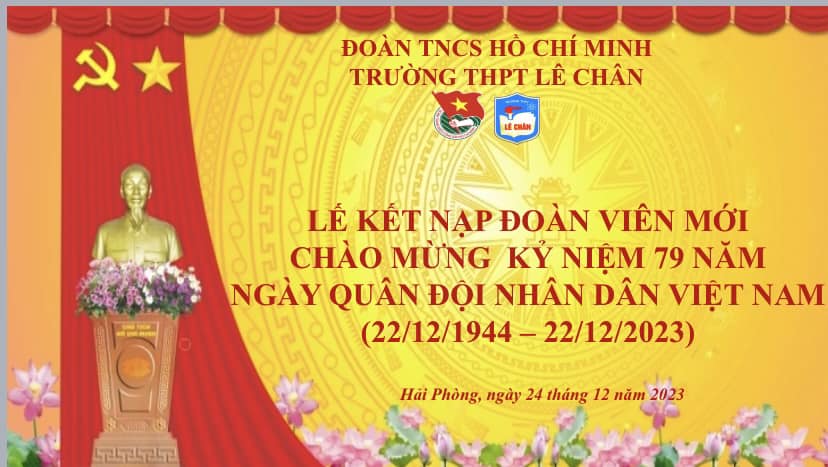 Được đứng trong hàng ngũ của Đoàn là vinh dự tất cả thanh niên Việt Nam. Căn cứ vào Điều lệ Đoàn TNCS Hồ Chí Minh và Hướng dẫn thực hiện Điều lệ Đoàn, nhằm nâng cao chất lượng sinh hoạt của Chi đoàn và xây dựng Chi đoàn ngày càng vững mạnh. Đáp ứng nguyện vọng tiến bộ và trưởng thành của thanh niên học sinh, căn cứ vào ý thức phấn đấu học tập rèn luyện của các anh (chị) thanh niên tiên tiến và văn bản đề nghị xét kết nạp đoàn viên của các chi đoàn, được sự đồng ý của Đảng ủy, BGH nhà trường, hôm nay Đoàn trường THPT Lê Chân tổ chức lễ kết nạp đoàn viên cho những thanh niên tiên tiến. Đây cũng là một trong chuỗi hoạt động có ý nghĩa của Đoàn trường Chào mừng kỷ niệm 79 năm ngày thành lập Quân đội nhân dân Việt Nam (22/12/1944-22/12/2023) và 34 năm Ngày hội Quốc phòng toàn dân (22/12/1989-22/12/2023).