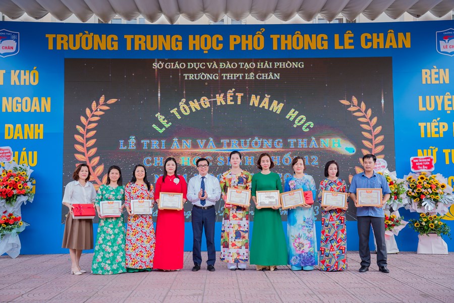 Trong không khí phấn khởi của những ngày tháng 5 lịch sử, ngày 27 tháng 5 năm 2023, trường THPT Lê Chân long trọng tổ chức lễ tổng kết năm học 2022 – 2023, tri ân cho học sinh khối lớp 12 ra trường và tổ chức khen thưởng các cá nhân tập thể học sinh và cán bộ giáo viên có thành tích cao trong năm học.